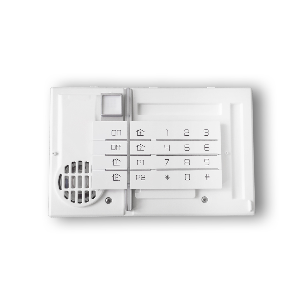 Über die Daitem D22 - Code-Einrichtung ohne Cover - BH640AX lässt sich das Alarmsystem innerhalb oder außerhalb des überwachten Bereichs bedienen. Jede Eingabe wird von der Code-Einrichtung durch ein akustisches und ein visuelles Signal (LED-Anzeige) und für BH640AX Sprachsteuerung und visuelles Signal bestätigt. Die Code-Einrichtung signalisiert weiterhin: den Zustand des Systems, den Zustand der Kontakte und eventuell aufgetretene Störungen.