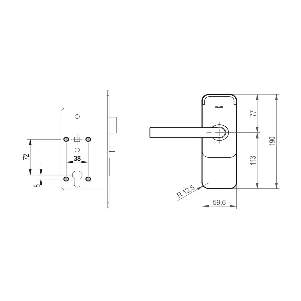 Die SALTO - Abdeckplatte 059 (DIN 72) für XS4 Mini Beschlag - COPLEM059x72 aus Edelstahl für XS4 Mini Ex150 Beschläge passend für Türen mit DIN-Einsteckschloss mit der Entfernung 72 mm. Das Set enthält 2 Abdeckplatten für innen und außen.