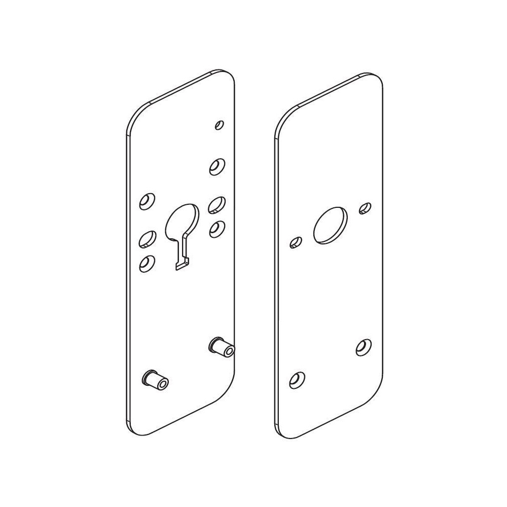 Die SALTO - Abdeckplatte 059 (PZ 85) für XS4 Mini Beschlag - COPLEM059x85 aus Edelstahl für XS4 Mini Ex150 Beschläge passend für Türen mit Euro- Einsteckschloss mit der Entfernung 85 mm. Das Set enthält 2 Abdeckplatten für innen und außen.