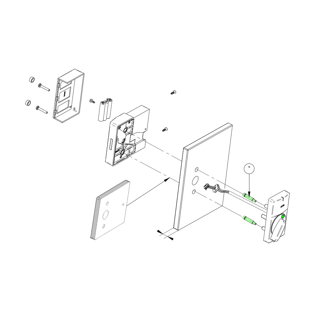 Der SALTO - Distanzhalter für XS4 Locker Spindschlösser - SP220333-20 wird nur für Türblattstärken > 40 mm benötigt.