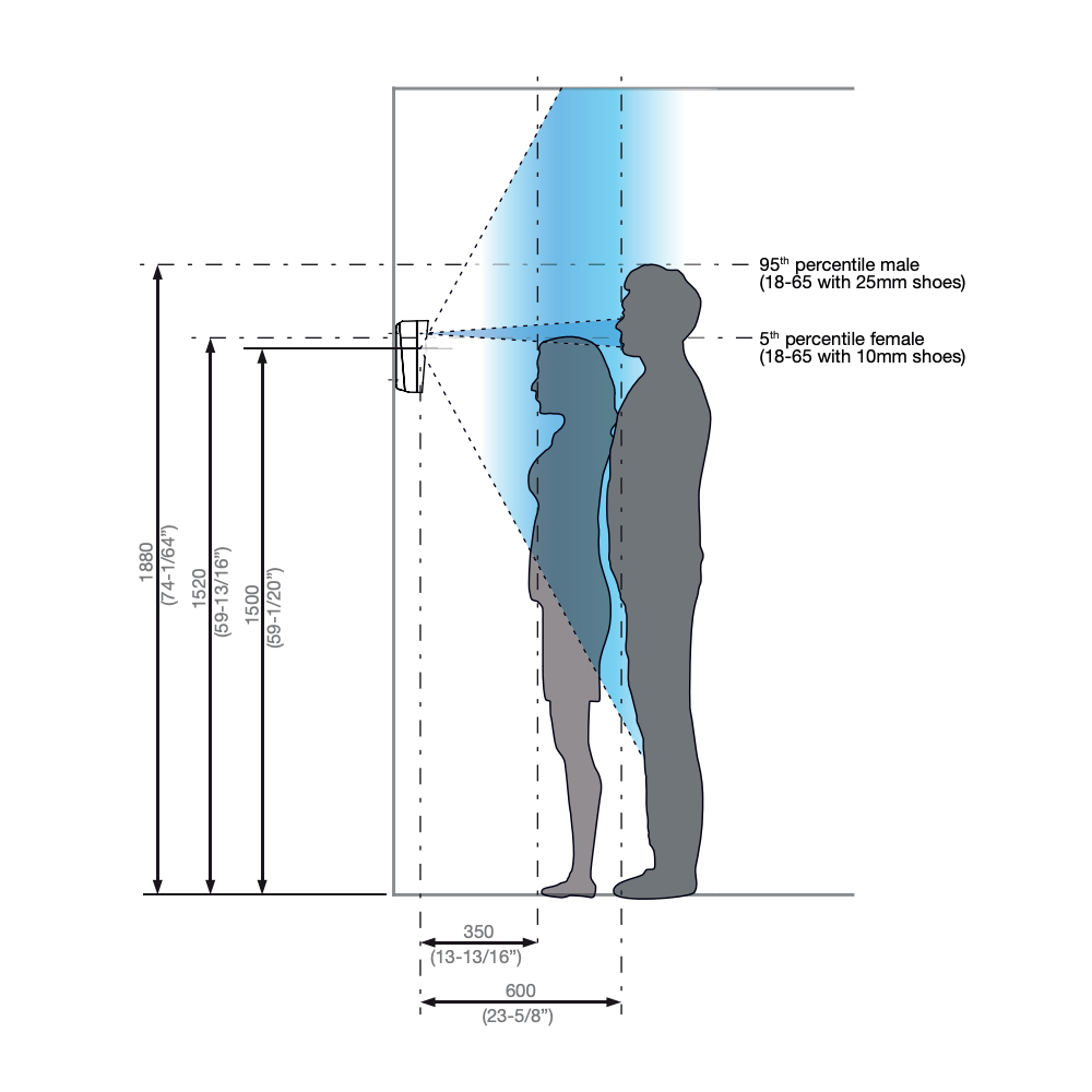 - Mindesbeleuchtungsstärke: 100 Lux in 60 cm vertikaler Entfernung