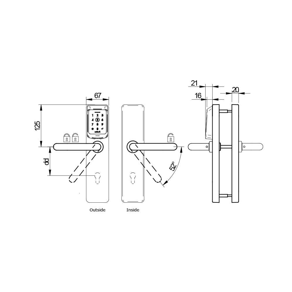 - Modelle mit Zylinderlochung und protokollierter mechanischer Notöffnung verfügbar. Kompatibel mit Europrofil-Zylindern und Schweizer Rundzylindern