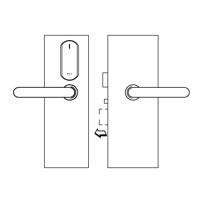 - Der Griff zieht die Falle und den Riegel in die normale Position zurück.