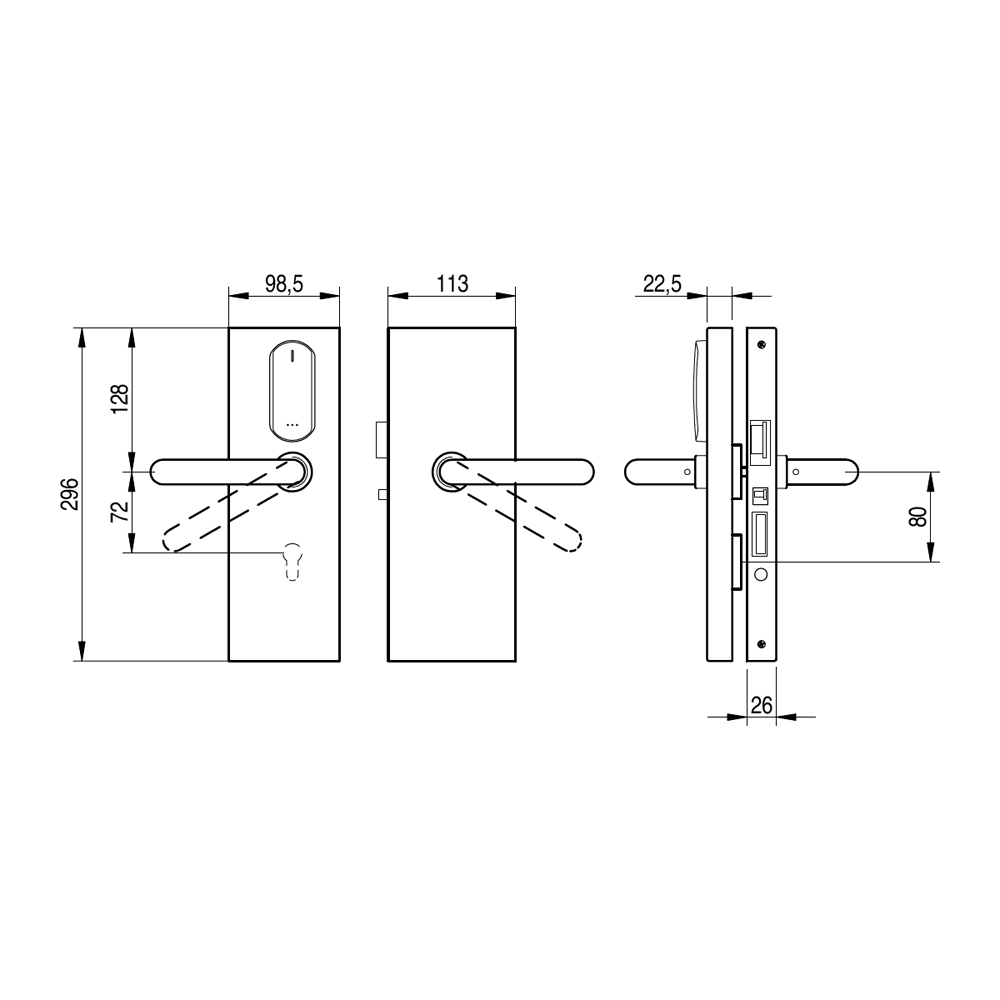 Die Modellreihe an Glastürbeschlägen ist für Türen geeignet, die sich nicht verkabeln lassen bzw. an denen keine bauliche Veränderung möglich ist.