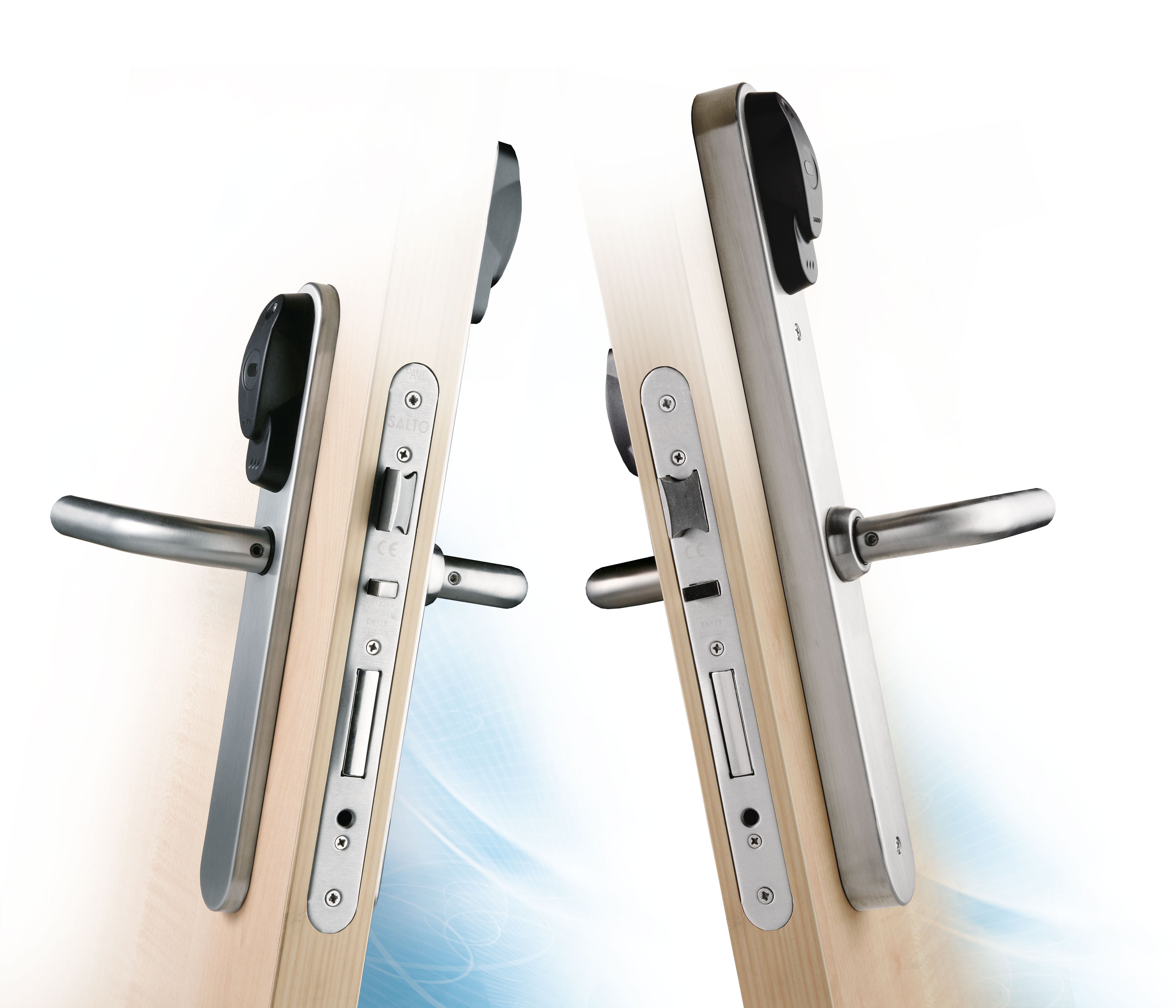 Der SALTO - XS4 Original Doppelleser Türbeschlag mit Leseköpfen an beiden Seiten kontrolliert sowohl den Zutritt als auch den Austritt durch eine Tür, was in seiner Ereignisliste protokolliert wird. Der Doppelleser kann an fast jeder Tür mit europäischem Profilzylinder installiert werden. Er funktioniert ebenfalls mit einer Vielzahl an anderen Profilen, einschließlich Schweizer Rundzylindern.