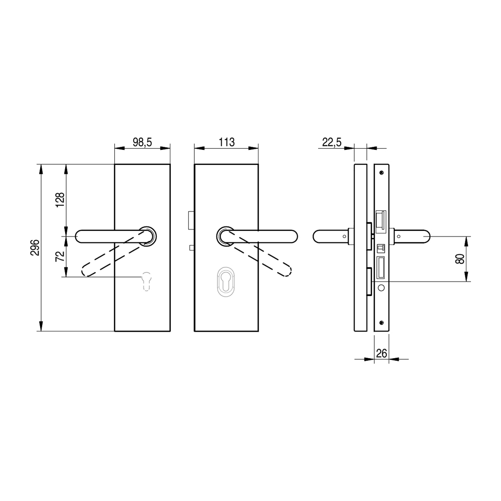- Entfernungsmaß Drücker/Zylinder: 72 mm