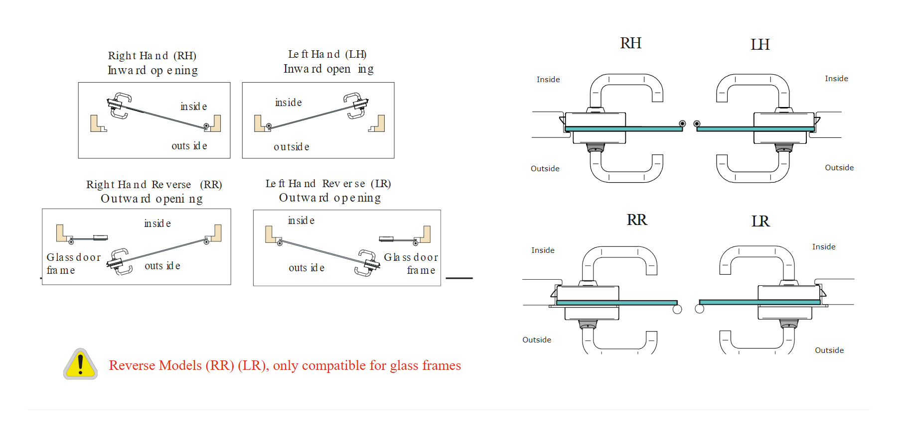 - nach außen öffnende Drückerrichtungen nur mit Glasrahmen kompatibel