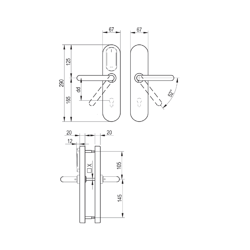 - Maße: 290,0 x 67,0 x 20,0 mm (H x B x T).