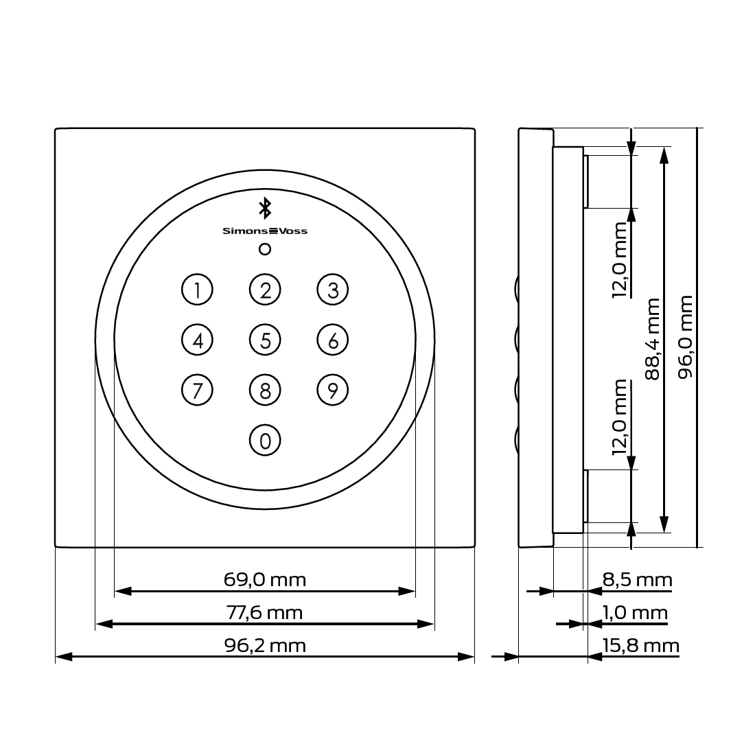 - Die Reichweite zwischen PinCode-Tastatur AX und Schließung beträgt dank BLE von 1,5m bis zu 2,5 Meter (je nach Schließungstyp und Einbausituation).