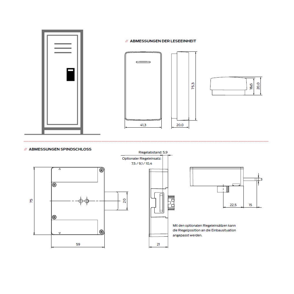 - Abmessungen Außenleser (B x H x T): 41,3 x 75,3 x 20 mm