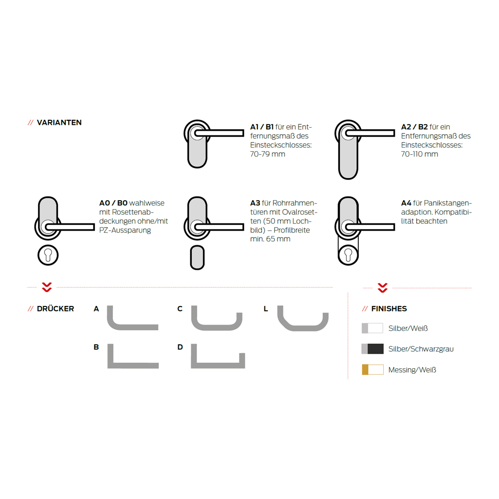 | Türmaßvorgaben | Türstärke: 38 - 200 mm Entfernungsmaße: 70 - 110 mm Vierkant: 7 | 8 | 8,5 | 9 | 10 mm  |