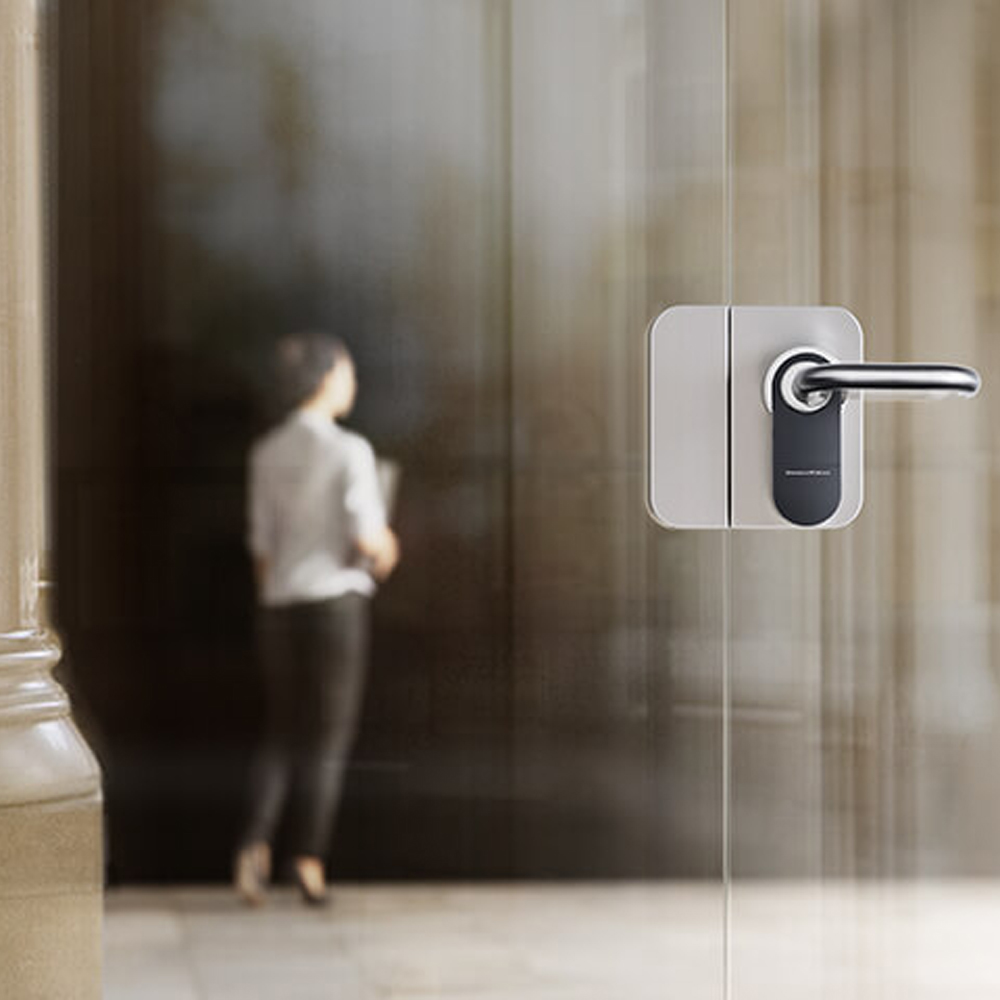 Kann man Gutes noch besser machen? Ja! Unsere neue Generation „SmartHandle“ orientiert sich konsequent an Ihren Bedürfnissen und setzt dabei neue Standards im Bereich digitaler Türbeschlag. Dank modularem Aufbau, Variantenreichtum und innovativen Funktionen wie BLE* und Phone2Door* bringt SimonsVoss mit dem SmartHandle AX einen neuen Level Intelligenz, Komfort und Sicherheit an die Tür. Adaptives Design und das Zusammenspiel von Metallelementen sind nicht nur optisch ein Genuss, sondern bieten größtmögliche gestalterische Freiheit. Mit dem neuen SmartHandle AX steht eine smarte Lösung für Innentüren zur Verfügung, die bohrungsfrei am vorhandenen Rosetten-Lochbild (DIN 18251) befestigt werden kann.