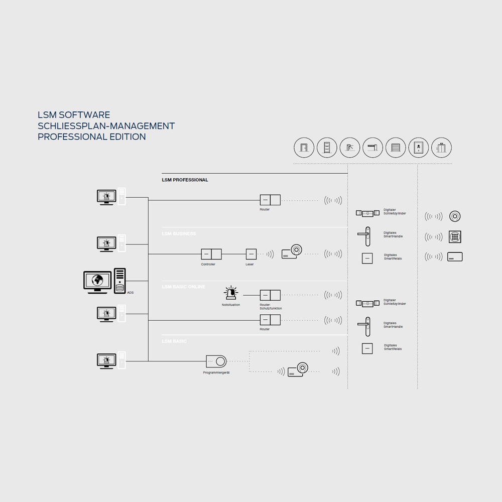 - Mit der LSM-Software sind KEINE SimonsVoss MobileKey Komponenten programmierbar!