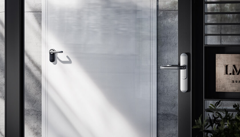 Adaptives Design und das Zusammenspiel von Metallelementen überzeugen nicht nur optisch, sondern bieten größtmögliche gestalterische Freiheit. Mit dem digitalen Türbeschlag SmartHandle AX steht eine smarte Lösung für Innentüren zur Verfügung, die bohrungsfrei am vorhandenen Rosetten-Lochbild (DIN 18251) befestigt werden kann.