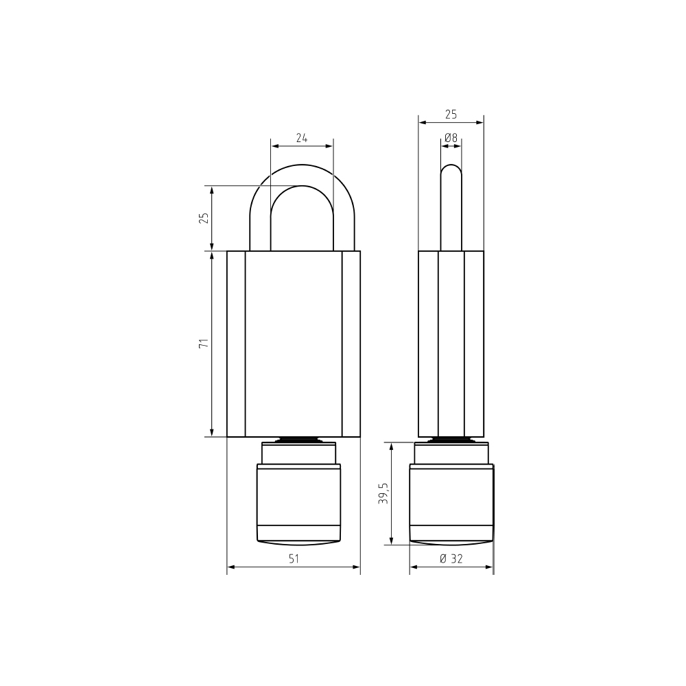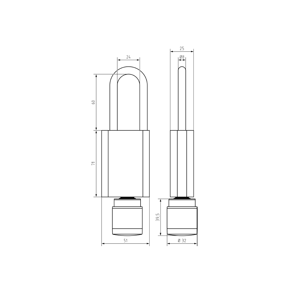 - 70 × 51 × 25 mm (8 mm Bügel)